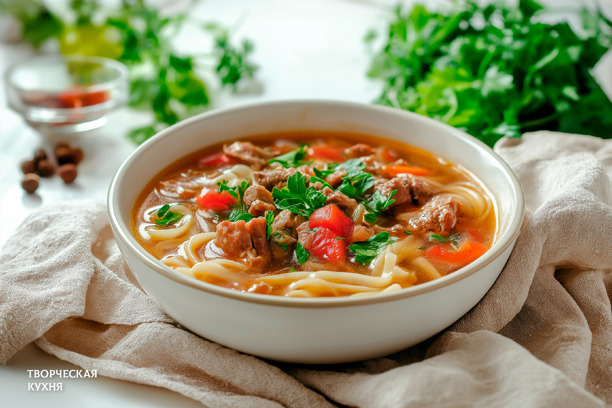 Ледяное ожидание вечера исчезает в момент, когда аромат поджаренного мяса и пряностей наполняет кухню. Лагман здесь выступает не как сложное блюдо, а как удобный сценарий: набор простых действий, который превращает обычное меню в уютное событие на тарелке.