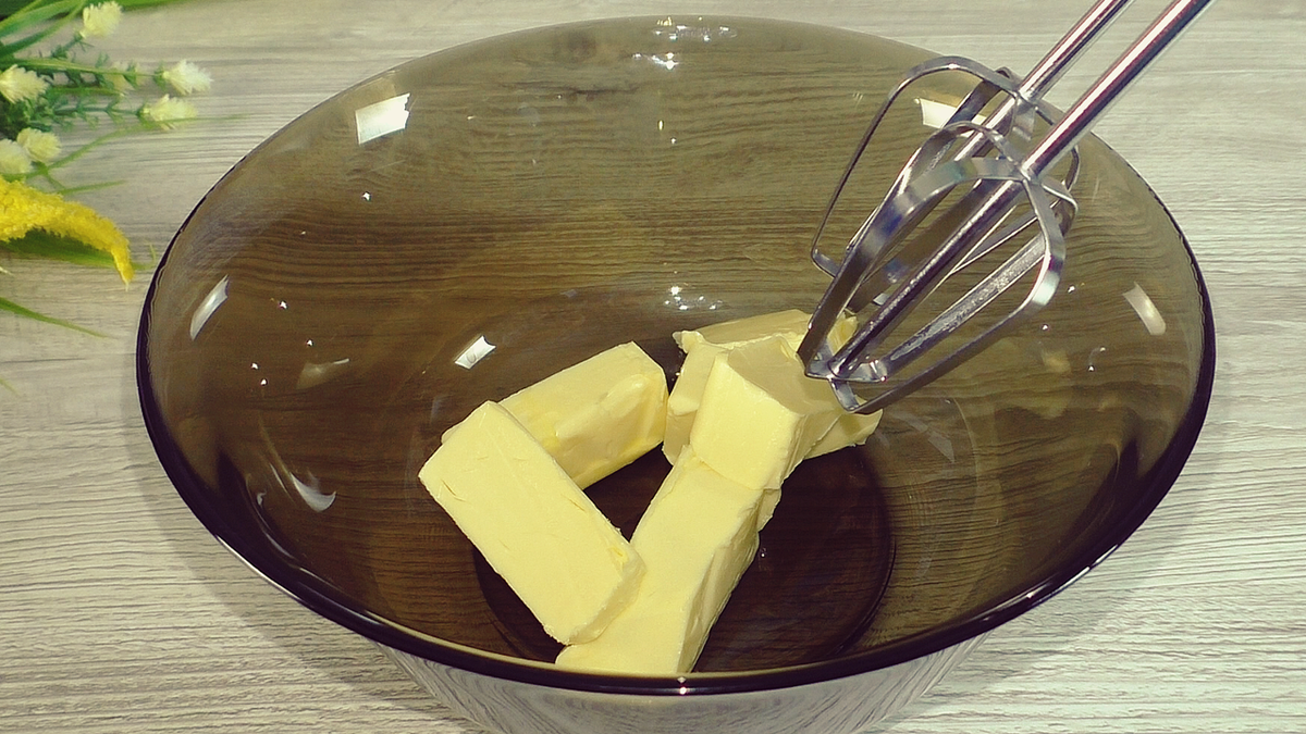 Первым делом, мягкое масло требуется взбить до однородной консистенции. Затем добавляются ванилин и соль, после чего поэтапно вводится сахар. В последнюю очередь последовательно вмешиваем яйца, тщательно взбивая массу. Далее поэтапно добавляем молоко и муку с разрыхлителем, легонько замешивая тесто. Оно должно напоминать густую сметану и быть воздушным.