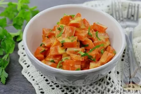 - Морковь, тушенная в сметане: Это простой и полезный гарнир, который порадует нежным вкусом и сливочными нотками, дополненный ароматом свежей зелени.