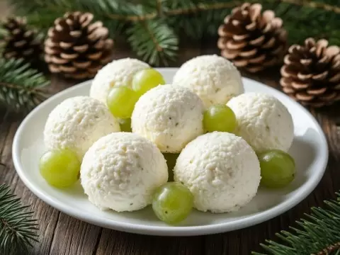 В поисках яркой и необычной закуски для празднования Нового года? Сырные «снежки» с сюрпризом из винограда — это то, что нужно! Эти аппетитные шарики станут настоящей находкой: их просто и быстро приготовить, они завоюют сердца и вкусовые предпочтения ваших гостей. Нежная сырная корочка в сочетании с сочными ягодами привнесет разнообразие в любое застолье и идеально дополнит как игристое вино, так и безалкогольные напитки.