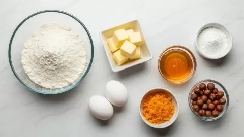 4. Ореховый акцент. Измельчите обжаренный фундук, оставив несколько крупных кусочков для украшения, и аккуратно вмешайте в тесто.