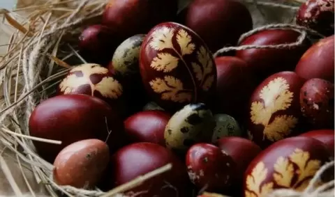 Оформление яиц с помощью растительности — древняя практика, восходящая к истокам. Раньше домохозяйки прикладывали к яйцам листья и цветы, обвязывали тканью и варили в отварах луковой шелухи или коры. После снятия ткани на скорлупе оставался светлый силует — символ весны и возрождения жизни.