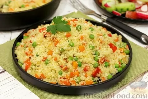 - Кускус с горошком и перцем: Быстрое, но вместе с тем, сытное и насыщенное овощами блюдо, которое отлично подойдет для обеда или ужина.
