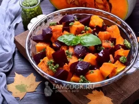 Запеченная тыква со свеклой и песто