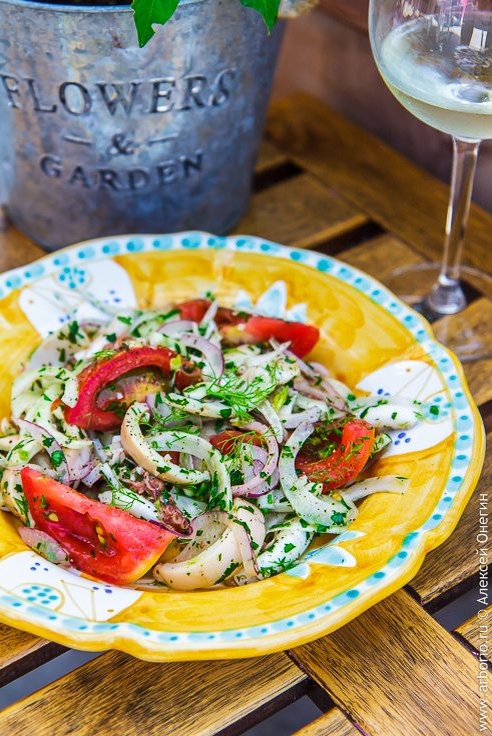 Для приготовления салата с кальмарами и фенхелем потребуется: