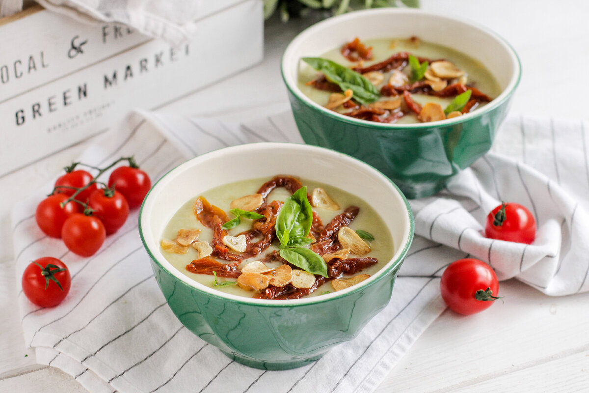 Суп-пюре из кабачков с вялеными томатами