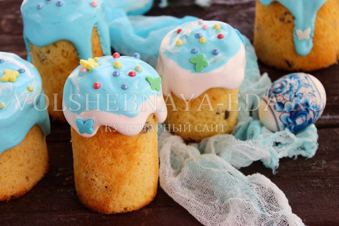 Остуженные куличи украсьте по своему усмотрению, используя глазурь и всевозможные посыпки. Эти куличи будут невероятно сочными, и их стоит попробовать всем, кто ценит домашнюю выпечку!