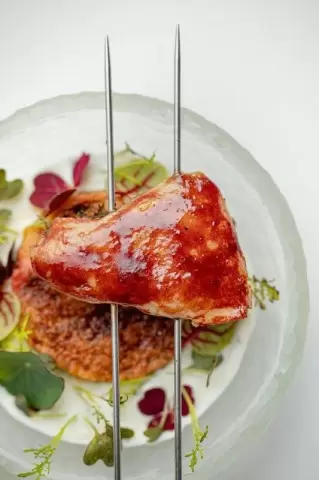 В меню ресторана Twins Easy презентуют удивительное блюдо — ножка перепёлки с запечённым баклажаном. Это кулинарное творение идеально передаёт атмосферу весеннего обновления, раскрывая весь потенциал нежного мяса перепёлки.