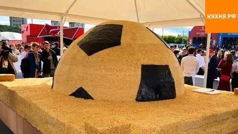 Этот удивительный шедевр весил целых 4026 килограммов и имел высоту около 2 метров. Волнительное событие попало в Книгу рекордов России, а местные кондитеры продемонстрировали, что смогут собрать не просто десерт, а настоящий футбольный мяч. При его создании были использованы: