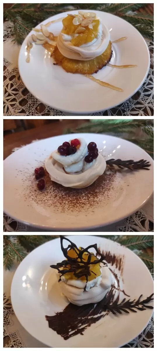 Этот изысканный рецепт представляет собой интересный подход к классическому десерту «Павлова», исходя из которого создаются мини-пирожные с целым набором начинок и украшений. Идея подать такой десерт в порционном виде позволяет удивить гостей разнообразием вкусов и индивидуальным оформлением.