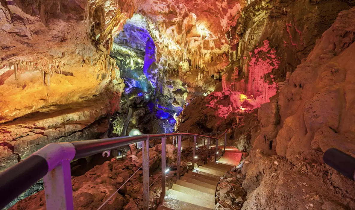 Экскурсия по Пещере Прометея — это возможность перенестись в другой мир. Гостям открываются невиданные ранее скалы, сформированные миллионов лет назад, а окружающую атмосферу дополняют яркие сталактиты и сталагмиты, подсвеченные всеми цветами радуги.
