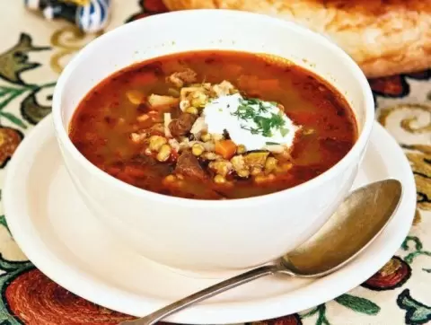 Суп подавайте в глубоких тарелках, а отдельно предложите сметану и нарезанную зелень. Такой восхитительный суп станет настоящим ужином для всей семьи!