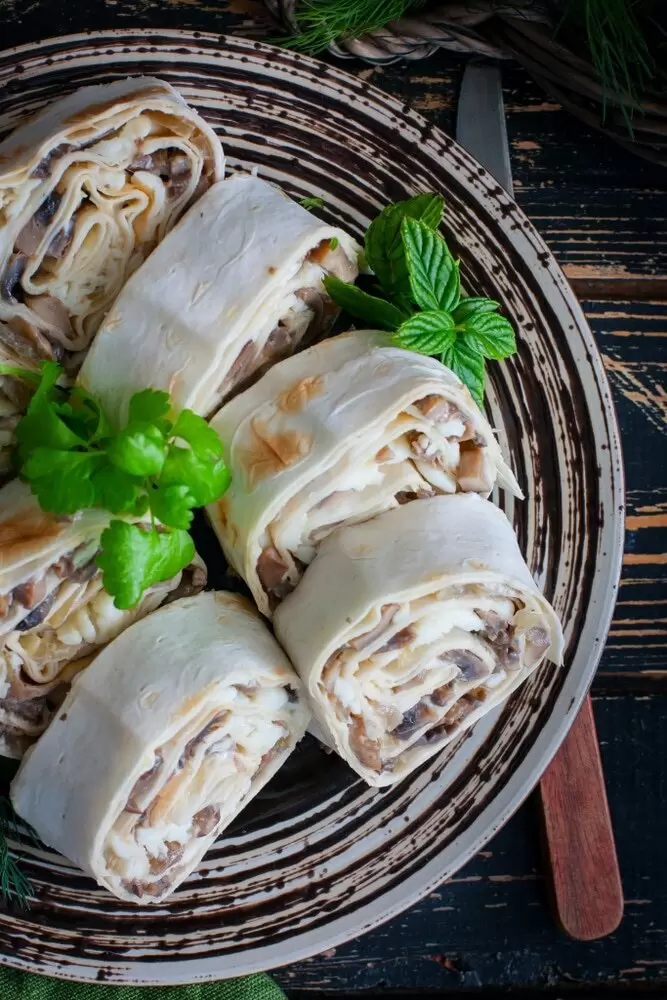 Рулет с грибами станет отличной закуской для пикника или гармоничным дополнением к основному блюду. Вкусное сочетание лаваша, грибов и яиц порадует даже самых требовательных гурманов.