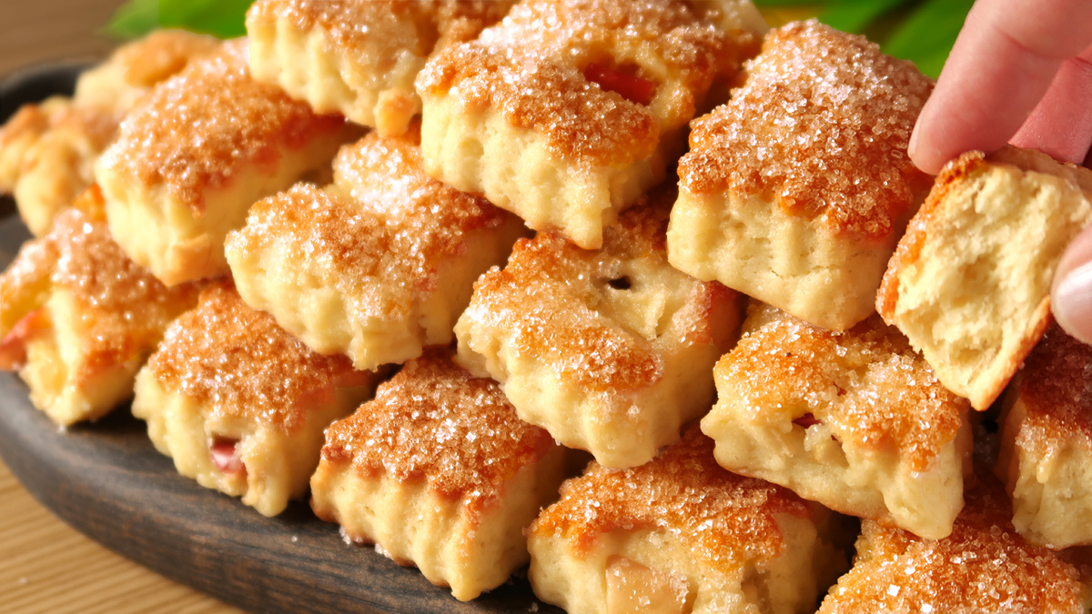Сформируйте из теста небольшие круглые или овальные печенья и выложите на противень, покрытый пергаментом. Посыпьте сверху сахаром для дополнительного хрустящего эффекта. После этого отправьте печенье в заранее разогретую духовку на 15-18 минут.