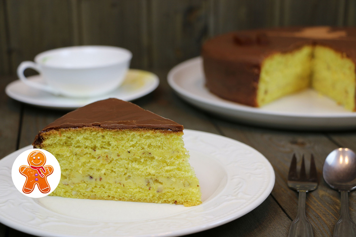 2. Выпечка: Перелейте тесто в форму и выпекайте в духовой печи около 40 минут, пока палочка не выходит сухой. Дайте бисквиту остыть, прежде чем разрезать его на три коржа.
