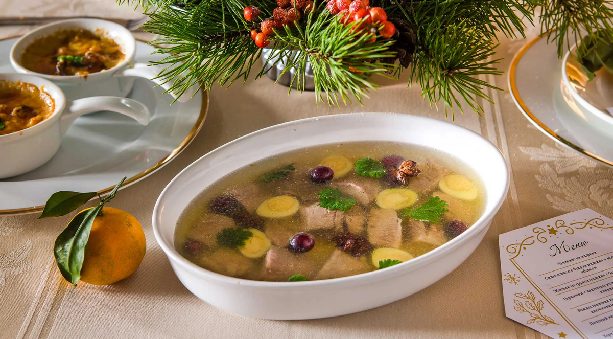 После чего заливают бульоном и ставят настояться в холодильник на ночь. На утро появится великолепное блюдо, которое станет центром внимания на любом празднике.